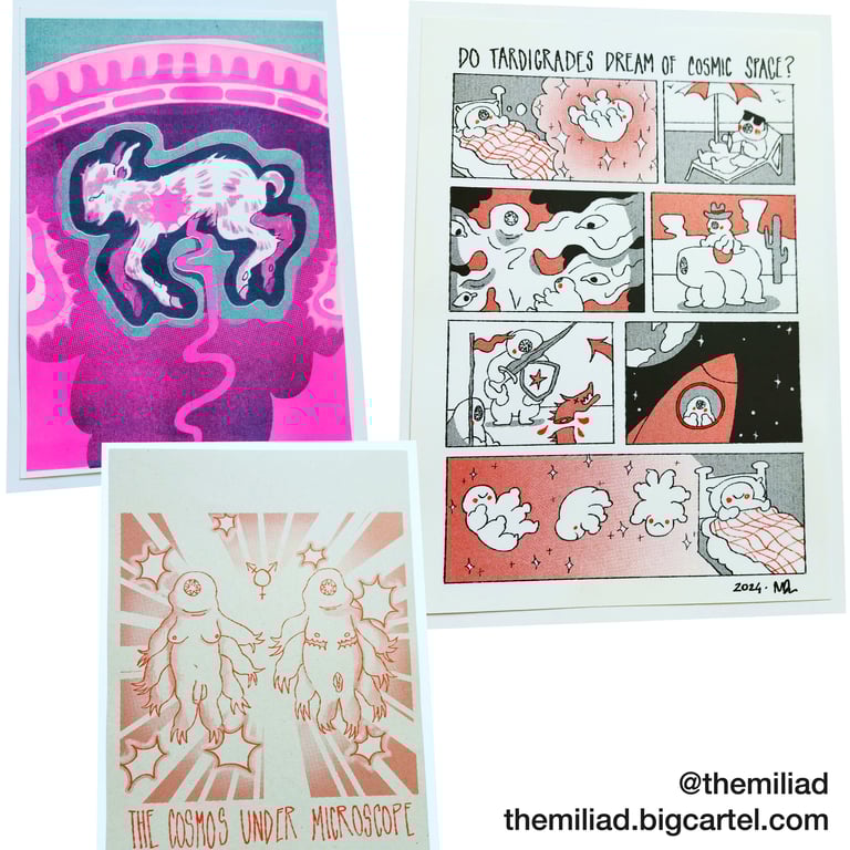 baby ibex/celia ii: fluorescent pink and violet ink on white paper